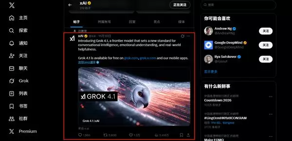 11月18日,xAI推出Grok 4.1——这款模型在对话智能、情感理解与现实世界实用性上有所改进。