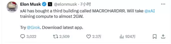 马斯克加速xAI:收购新楼冲刺2吉瓦算力规模