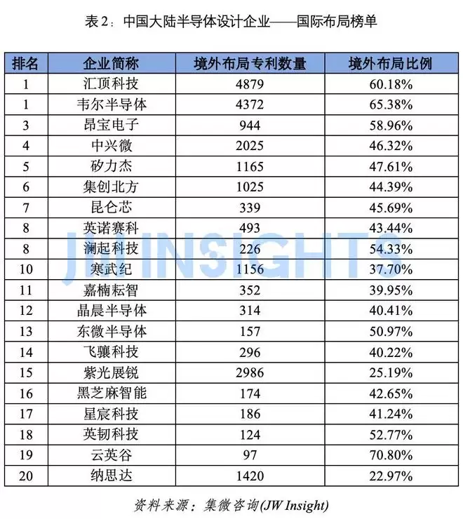 中国大陆半导体设计企业——国际布局榜单