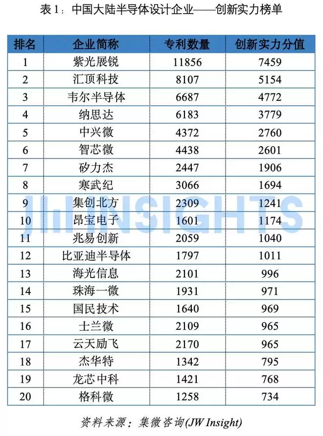 中国大陆半导体设计企业——创新实力榜单