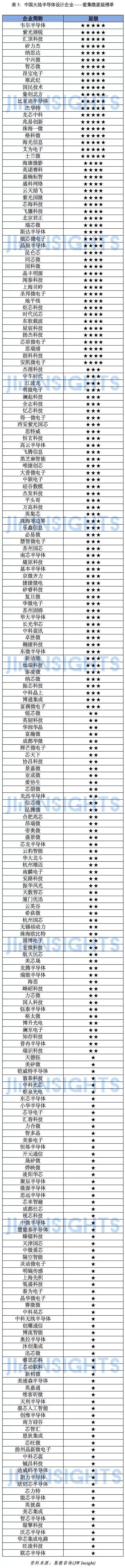 中国大陆半导体设计企业——爱集微星级榜单