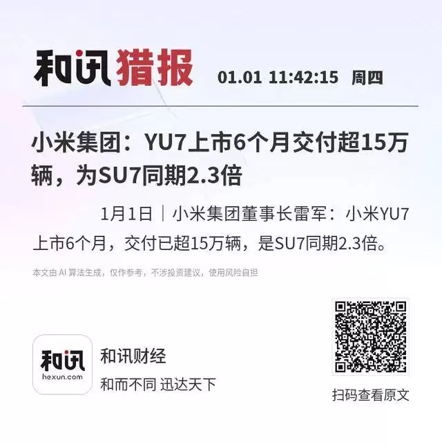 小米SU7半年交付15万辆,交付量为同期2.3倍表现亮眼