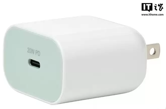 从外观来看,这款充电器采用了圆角倒角设计。带有充电口的那一侧塑料外壳为绿色,主体外壳则是经典的白色。