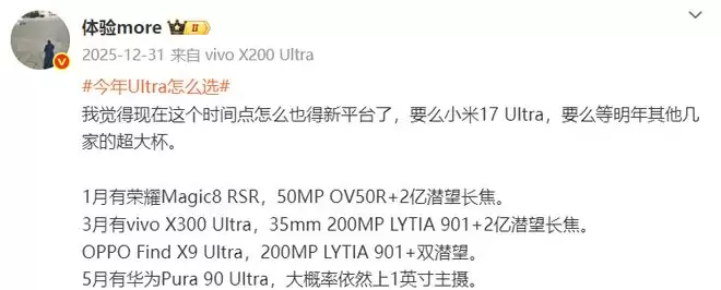 而随着时间的推移,2026年上半年应该会有四款承载着各自品牌顶尖技术的旗舰机型相继亮相,它们不约而同地将2亿像素和潜望长焦作为标配。