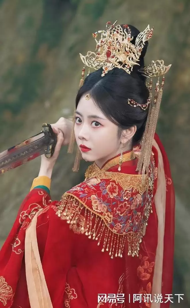 谭松韵在剧中一人分饰两个角色,开场的宁安公主,红色嫁衣眉角眼梢没有出嫁的欢喜,只有家国大义的担当,还有恨。