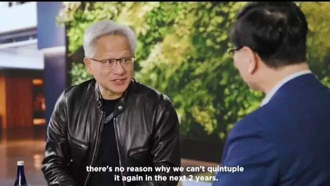 当被问及如何将双方合作关系推向新高度时,黄仁勋回应道:“过去两年我们实现了五倍的增长,没有理由认为未来两年我们不能再次实现五倍的增长。”