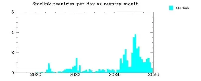 星链卫星返回大气层的频率丨Jonathan McDowell