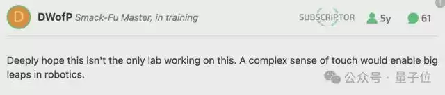 网友表示这种复杂而精细的触觉感知,将会为机器人领域带来一次巨大的跃迁。