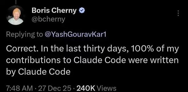 自从Claude Code之父Boris Cherny承认自己的代码100%由Claude Code写成,AI社区大为震惊:这是怎么做到的?