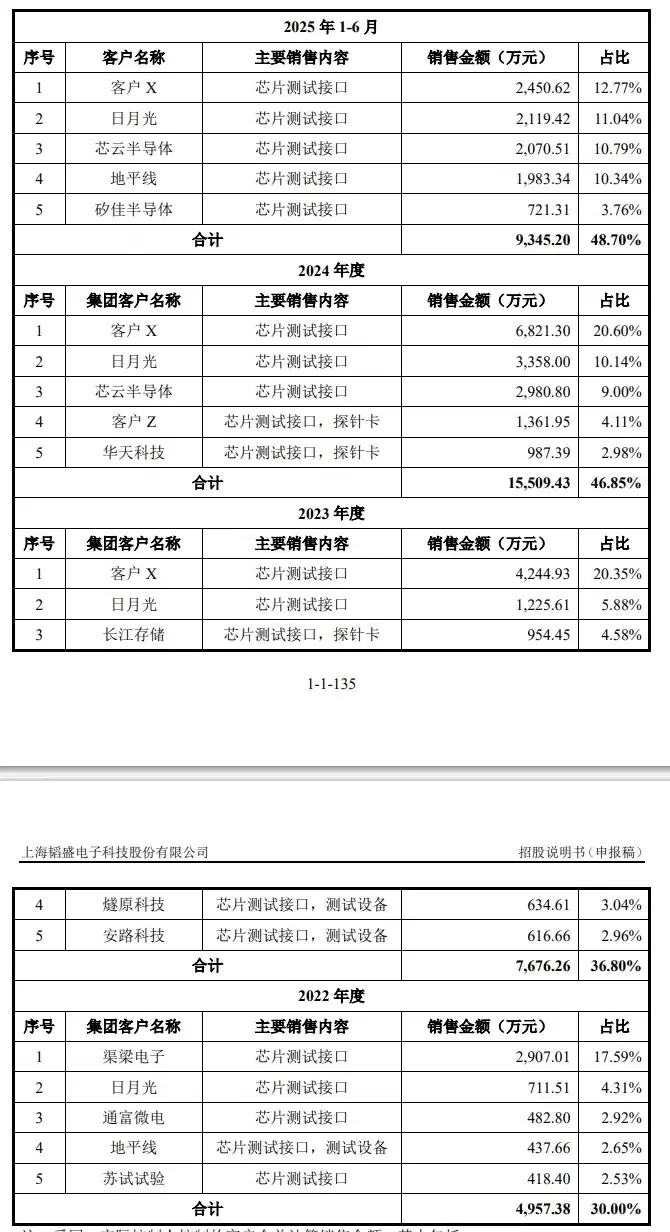 在客户集中度方面,箜盛科技的前五大客户构成如下: