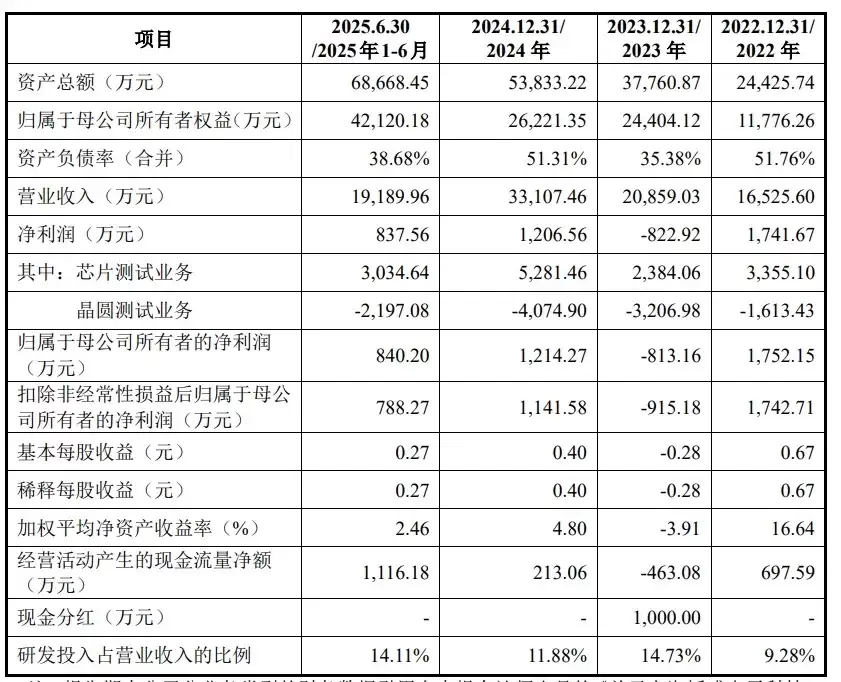 在报告期内(2024年至2025年上半年),箜盛科技的营业收入分别为1.65亿元、2.09亿元、3.31亿元及1.92亿元;同期实现的净利润分别为1741.67万元、-822.92万元、1206.56万元以及837.56万元。