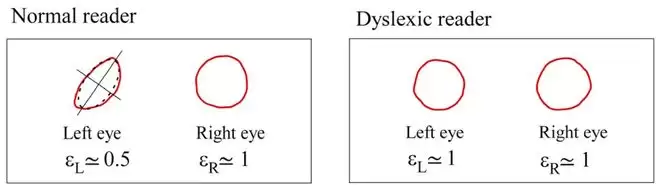 普通人主视眼的麦克斯韦斑中心通常呈圆形,而非主视眼则多呈椭圆形;然而,阅读障碍者的双眼麦克斯韦斑大多呈现对称形态,这使得左右眼无法形成足够的立体视觉,进而在阅读文字时出现镜像与重影。