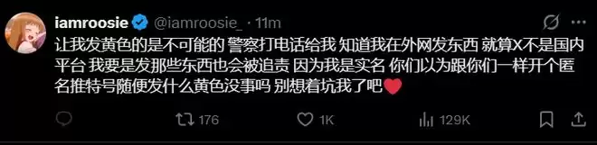 但不知是不是不想爆料了,她又称在外网发也会被追责,一些私密照不会发了,疑似认怂了。