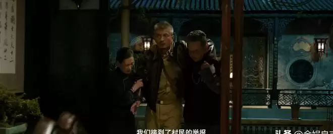 再来看张晨光演的叶德公,本该演出来有情有义的人物高光,但是他一出来,脸就拉得老长,眼睛眯成缝,嘴巴撇着。