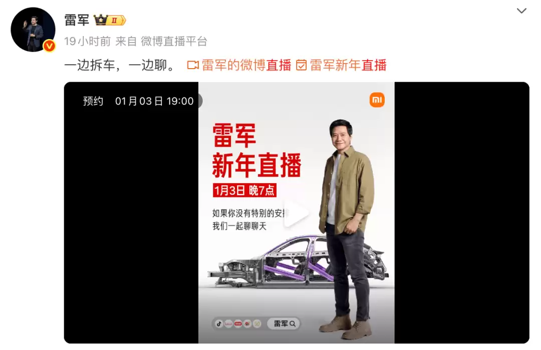 值得注意的是,原定于2025年末举办的雷军跨年直播因故推迟后,将于1月3日晚间重启。据透露,直播中将首次公开拆解小米YU7工程样车,技术团队将现场解析电动车核心部件设计。这场推迟的跨年活动因涉及小米汽车最新进展,自宣布以来已持续占据科技话题榜首位。