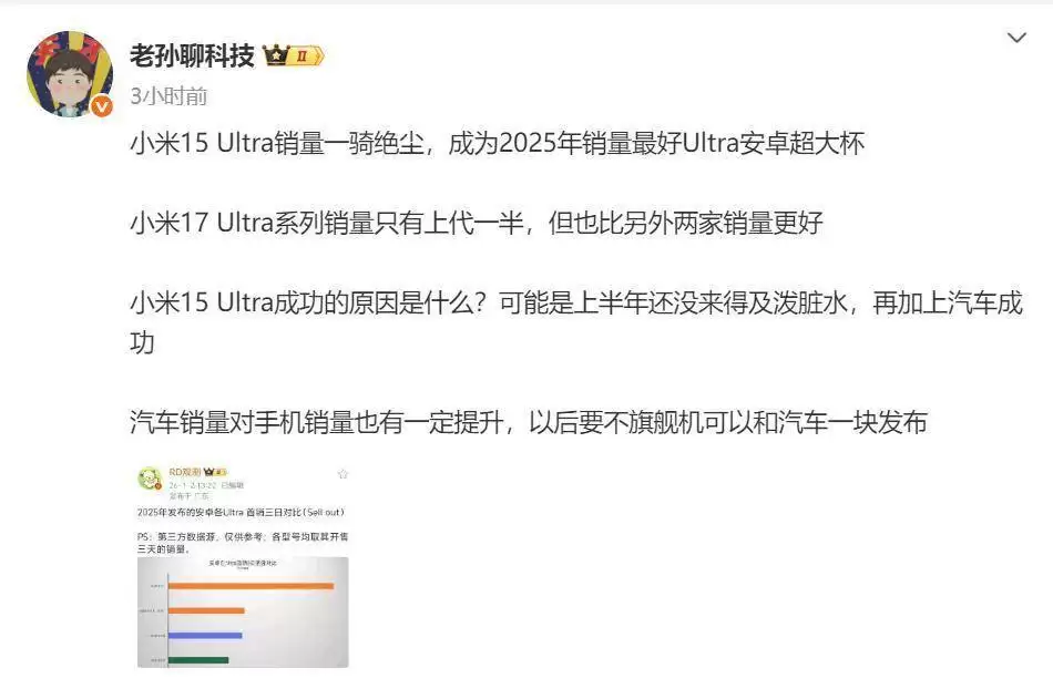 与同类产品相比,小米15 Ultra的优势尤为突出。以OPPO Find X8 Ultra的首月销量作为参照,小米15 Ultra的销量达到其三倍之多,远超其他品牌的同类机型。这一数据直观反映出消费者对小米15 Ultra的高度认可,使其在高端市场牢牢占据了一席之地。即便后续发布的小米17系列销量约为上一代的一半,但依然在同品类产品中表现优异,进一步巩固了小米在高端手机市场的地位。