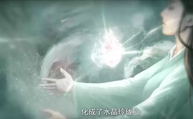 绝望之下,念下焚心决,将自己原本的心融成水晶玲珑心。