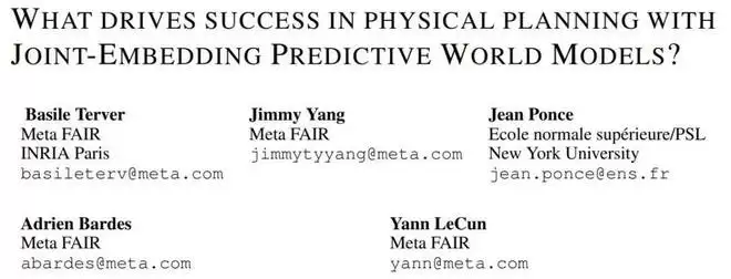 从名字也能看出来,这个模型与 Yann LeCun 的JEPA(联合嵌入预测架构)紧密相关。事实上也确实如此,并且 Yann LeCun 本人也是该论文的作者之一。更有意思的是,在这篇论文中,Yann LeCun 的所属机构为 Meta FAIR。不知道这是不是他在 Meta 的最后一篇论文?