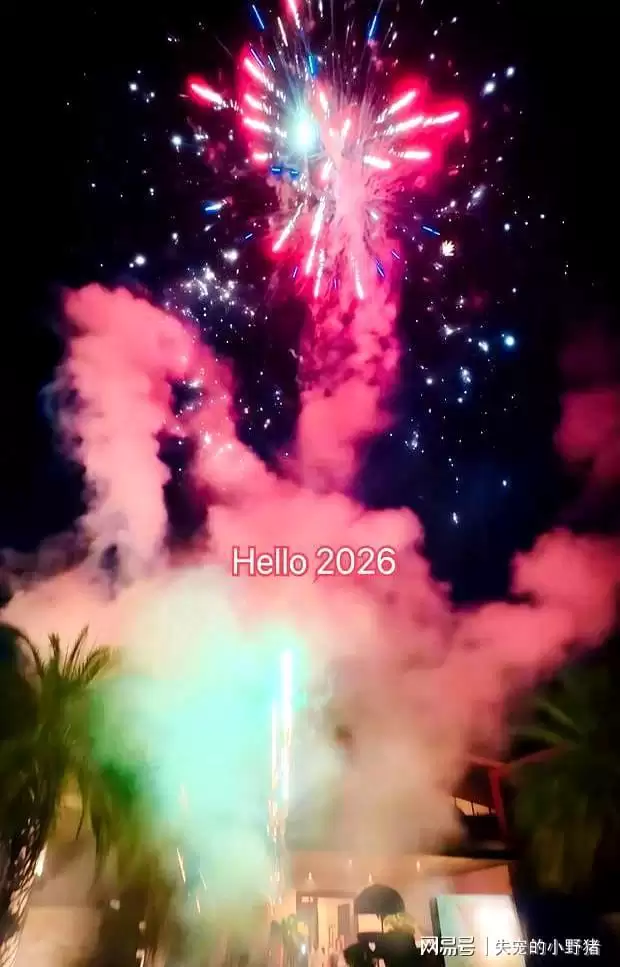 跨年的烟花绚烂而美丽,映衬着吴尊一家四口的笑脸。