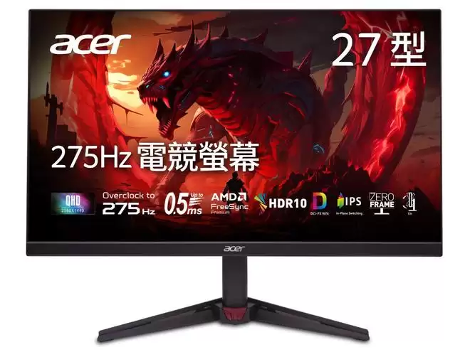 宏碁(Acer)于1月4日最新发布了一款Nitro暗影骑士系列的显示器——VG270U Z2。该显示器采用27英寸IPS面板,具备2560×1440 QHD分辨率及高达275Hz的超频刷新率,其机身中消费后回收材料的用量达到了35%。