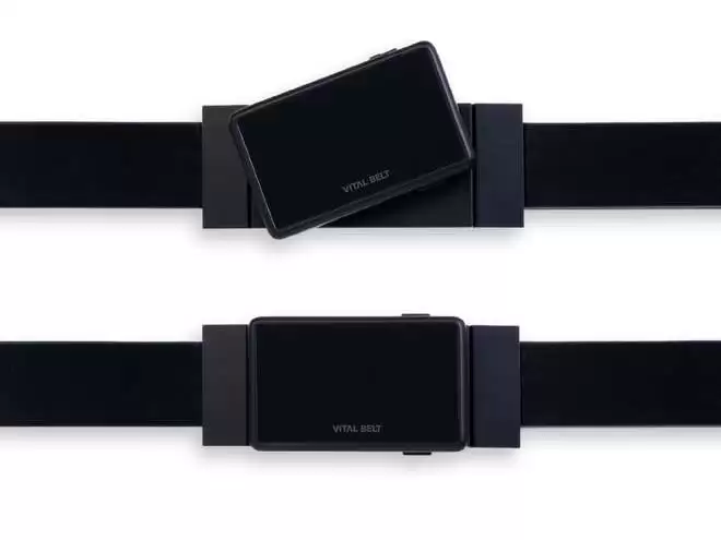 VITAL BELT采用模块化结构设计,由腰带本体与可拆卸的智能带扣两部分组成。其智能带扣部分利用了毫米波(mmWave)等技术,能够穿透衣物直接测量使用者的呼吸频率、脉搏波动及身体动作。