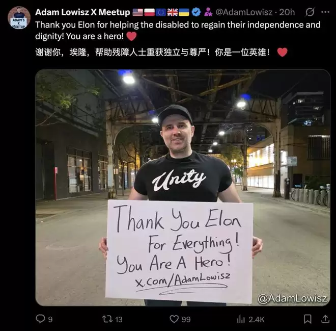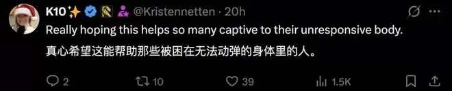 帖子迅速获得网友超过9万点赞,「真心希望能帮助那些被困在无法动弹的身体里的人」「帮助残障人士重获独立与尊严」……