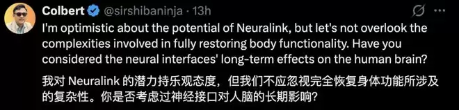 虽然Neuralink技术早期在瘫痪治疗和脑接口方面取得的成就令人鼓舞,但也有网友表示应当考虑神经接口对人脑的长期影响。