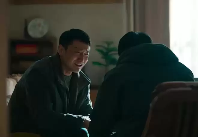 剧中他面对兄弟遗体时神情崩溃,但这份悲痛并未唤醒良知,反而催化了内心的黑暗面。
