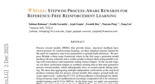 这项由Amazon AGI和加州大学洛杉矶分校(UCLA)的研究团队于2025年2月发表在arXiv预印本平台的突破性研究(编号arXiv:2512.03244v1),彻底颠覆了传统人工智能训练需要标准答案的固有模式。研究团队的核心成员包括来自UCLA的Salman Rahman和Nanyun Peng教授,以及Amazon AGI的Sruthi Gorantla、Arpit Gupta、Swastik Roy和Yang Liu等专家,他们共同打造了名为SPARK的革命性框架,让AI系统能够在完全没有标准答案的情况下进行学习和改进。