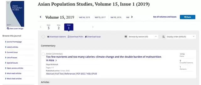 ▲期刊《亚洲人口研究》15卷第1期并无这篇被引论文