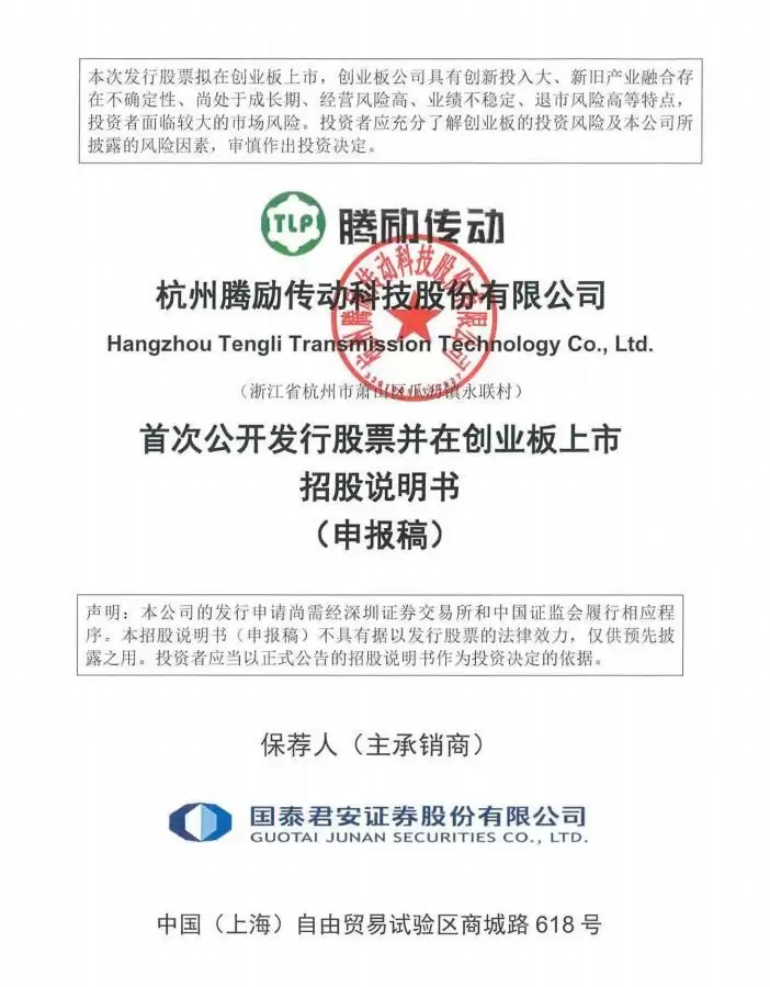 国泰海通保荐腾励传动IPO获受理