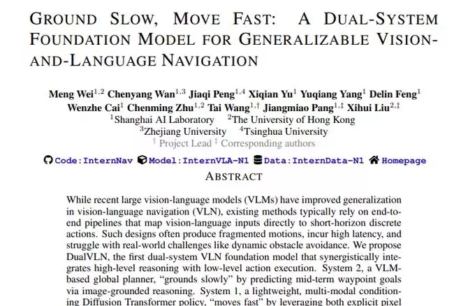 这项由上海AI实验室牵头,联合香港大学、浙江大学、清华大学等多家知名学府共同完成的重要研究,发表于2025年12月。研究团队提出了名为DualVLN的双系统视觉语言导航模型,这是该领域首个采用 "快慢
