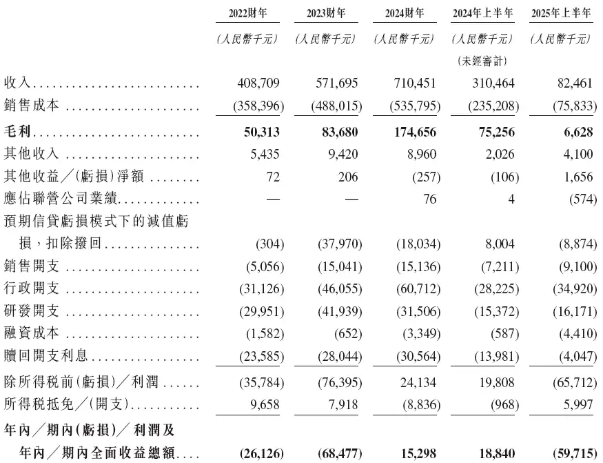 财务方面,数据显示在过去的2022年、2023年、2024年及2025年上半年,玑大科技录得的营业收入分别为人民币4.09亿元、5.72亿元、7.10亿元及0.82亿元,相应的净利润分别为人民币-2,612.6万元、-6,847.7万元、1,529.8万元及-5,971.5万元。若以经调整净利润计,则分别为人民币183.0万元、-3,718.1万元、4,705.3万元及-5,455.3万元。