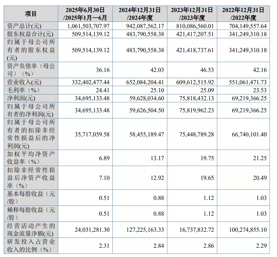 报告期内(2024年至2025年上半年),培源股份的营业收入分别为5.51亿元、6.1亿元、6.52亿元及3.32亿元;净利润分别为6921.94万元、7581.84万元、5962.8万元及3469.51万元。