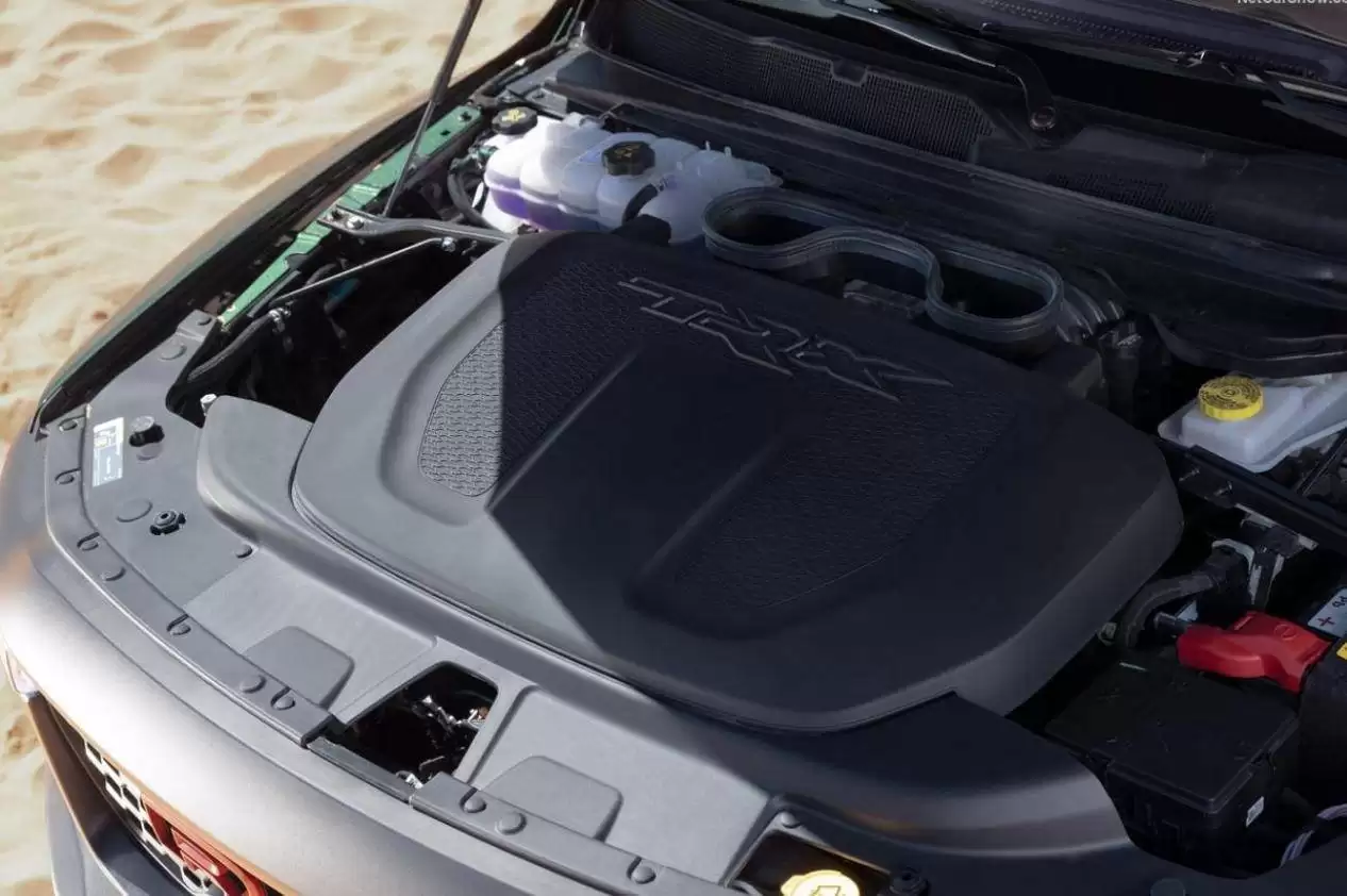 在进气系统方面,TRX霸王龙同样展现出了其独特之处。它采用了双路径设计,空气同时来自中网与引擎盖进气口,并在高容量空气滤芯前汇合。这种设计不仅提升了进气量,还在高温、沙尘甚至涉水环境下提高了稳定性。这意味着,即便是夏天去沙漠冲沙,TRX霸王的动力也不会受到丝毫影响,始终能够保持最佳状态。