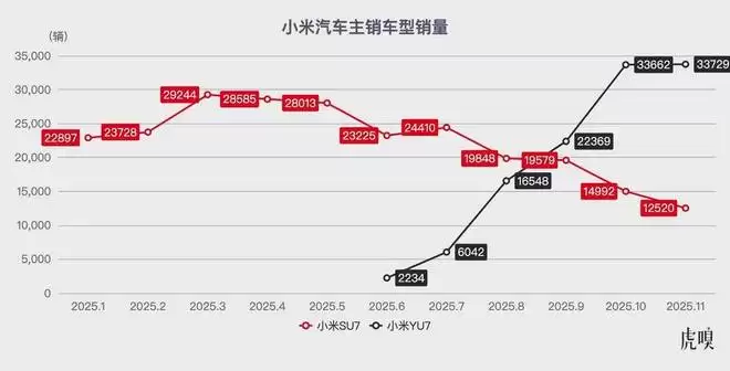 目前,YU7已经成为小米汽车销量的绝对主力。去年10月和11月,这款车共交付了6.74万辆,占同期小米总交付量的71%。