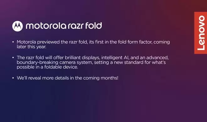 1月5日,IT之家接到爆料,知名消息人士Evan Blass提前泄露了联想旗下moto品牌首款大折叠手机Razr Fold的宣传演示文稿,让这款神秘新品首次进入公众视野。