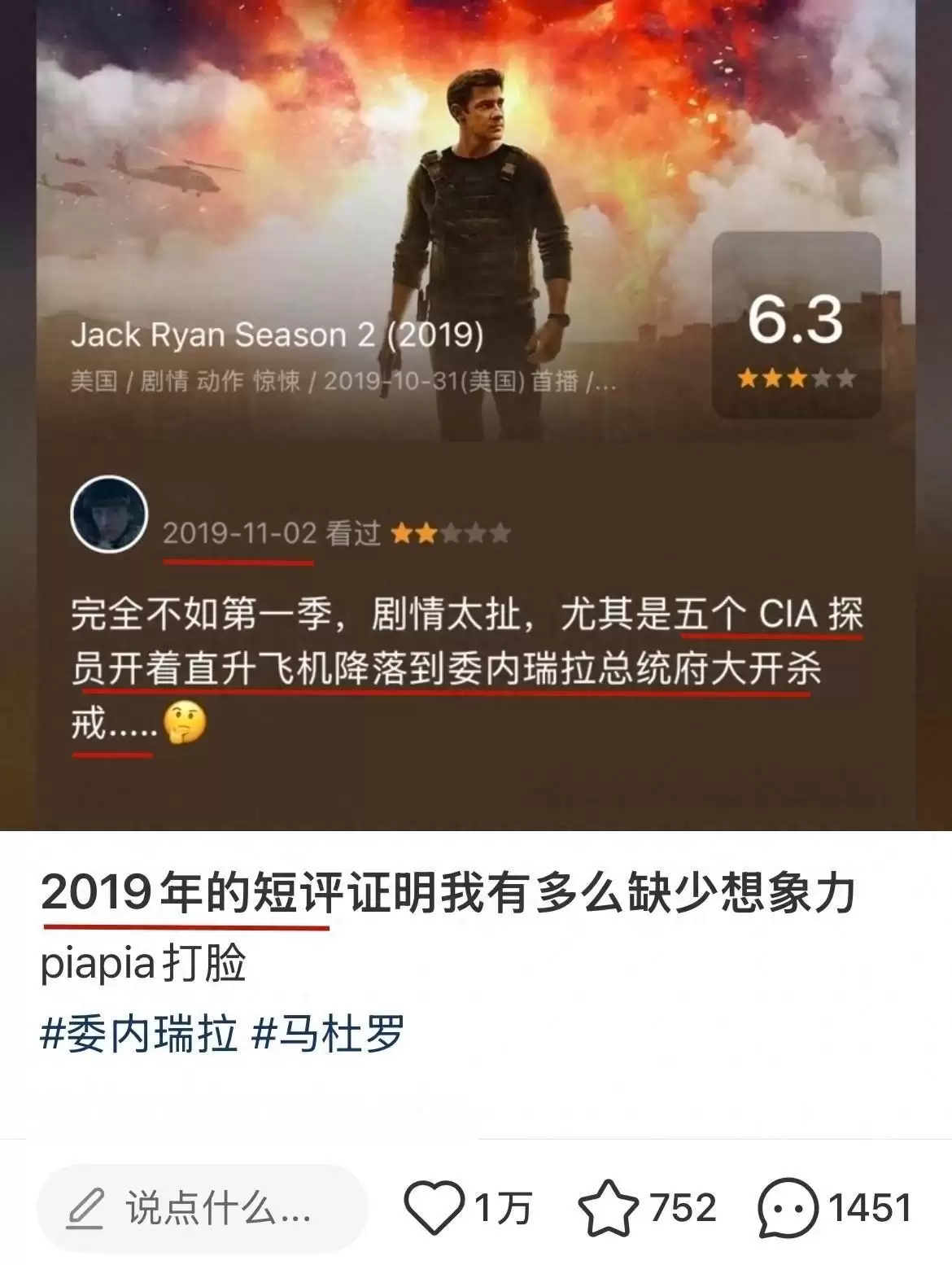 剧中,男主坐在撤离的直升机上,突发奇想决定去一趟委内瑞拉总统府,营救被关押的漂亮国间谍。