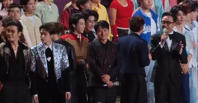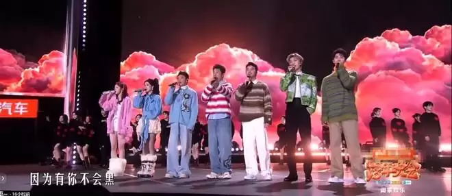 有意思的是,零点敲钟时,台上的华晨宇跑到了最边角,还是主持人拉着他回到了C位上。