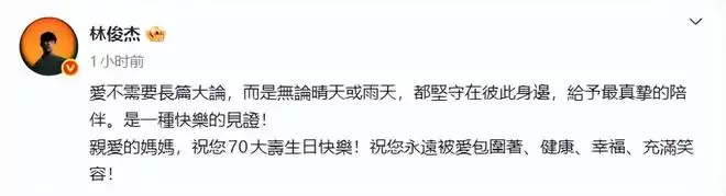 显然,这是林俊杰借母亲70岁生日之际,官宣自己的正牌女友。