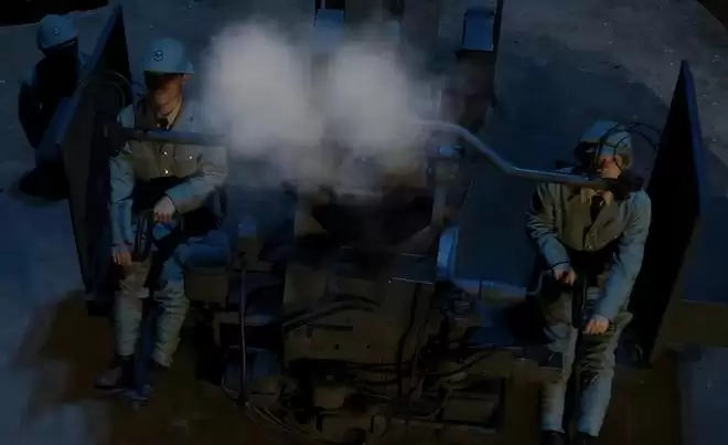 日方虽然不知道这样一个计划,但知道击落了一架美国飞机还有1人没找到,所以大肆搜捕,闯进了三灶岛的叶家祠堂。掏枪对准张晨光扮演的族长叶德公,嚣张的提醒他们,还处决了1名族人。