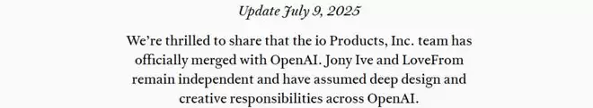 ▲OpenAI发文,io团队已正式加入OpenAI(来源:OpenAI正式)