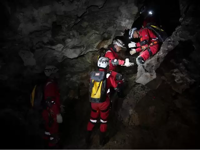 2025年12月,航天员在洞穴训练开展团队协作训练。