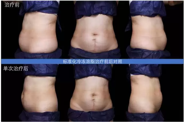 (图3. 标准化冷冻溶脂治疗前后对照,上列为治疗前,下列为单次治疗次后)