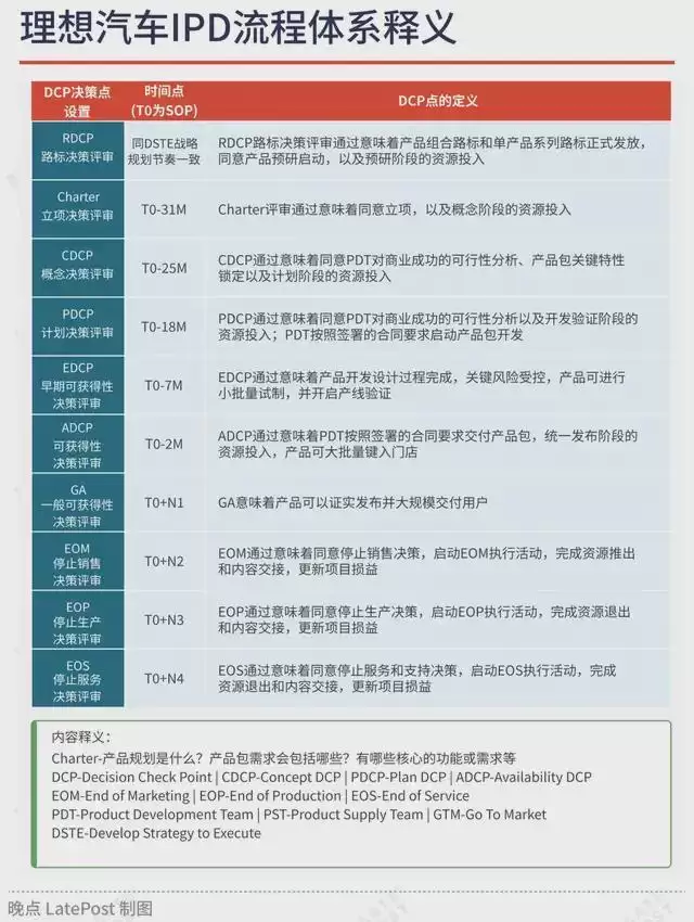 理想在 IPD 转型最彻底的 2024 年,构建的 IPD 流程体系,核心是从产品开发节奏出发,用阀点的方式控制整个流程的推进。其中产品管理委员会是产品决策的最高机构,产品操盘委员会是产品商业化的最高决策机构。在此基础上,分为路标工作组、车型 PDT、平台 PDT、供应 PST 以及销服 GTM 和财经。