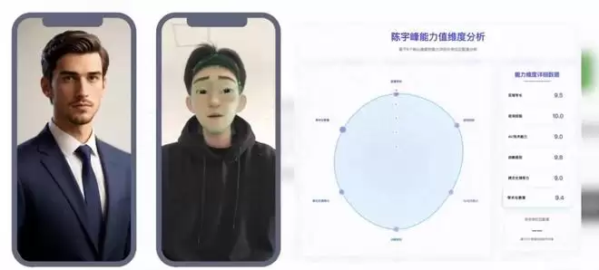 进入面试环节,“面试安排智能体”负责收集空档时间并智能排程,通知候选人与面试官并完成会议同步。“数字人面试官”支持全程虚拟面试,涵盖语音识别与外语交互。“面试报告智能体”可基于视频表现与内置测评维度打分,自动生成结构化评估报告并反馈至HR端。
