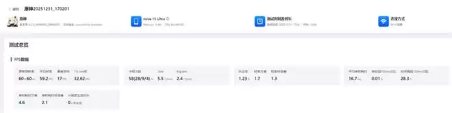 游戏的平均帧数达到了59.2FPS,1%low帧达到了32.62FPS。