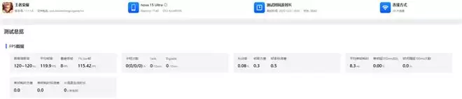 王者荣耀在nova 15 Ultra上能开启高画质120帧,游戏帧数表现可是稳稳当当,平均帧数达到了119.9FPS,1%low帧也达到了115FPS。