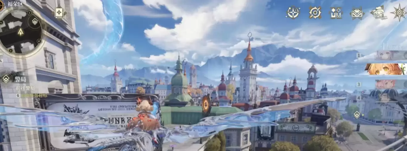 由于警局的地理位置相对偏远,所以前往目标地的高效移动方式就是节省时间的关键。玩家点击任务追踪,即可召唤出马匹迅速转移。为了避开地面复杂的障碍物和曲折的街道,使用沿途出现的空气旋流装置升空飞行是最佳选择——高空移动可以无视地形的限制,还能顺路捡到隐藏在高楼上的宝箱道具。另外建议玩家将游戏时间设置在视线更清晰的白天,以便于看清路线并顺路清理突发的遭遇事件。
