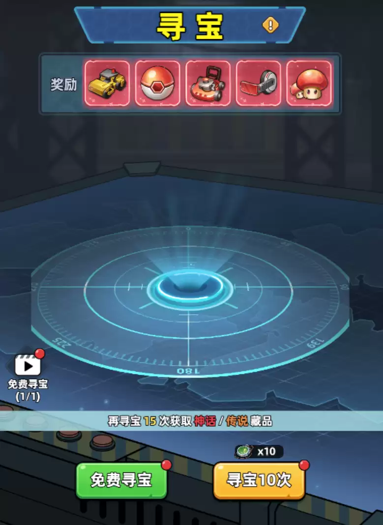 1. 在「寻宝」界面消耗寻宝探测器进行抽取;